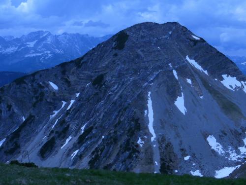 Nach einer weiteren Stunde Gehzeit ist die Weilheimer Hütte erreicht. Die unten angekündigten 5 Stunden hat man also eingehalten. Jetzt stellt sich die Frage, ob man den Tag hier beschließt oder weiter geht. Ich hatte immer schlechte Erinnerungen an diese Hütte (zu heiß, zu nass, Hungerast etc.). Für mich langt ein Getränk und eine Suppe. Dann doch lieber weiter. Bleibt man hier und hat am nächsten Morgen schönes Wetter sollte man sich den Sonnenaufgang auf dem Krottenkopf nicht entgehen lassen. Diese 150 HM sind der Morgenspaziergang mehr als wert.